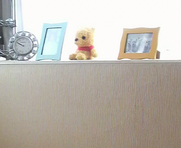 出窓の妹の遺影の隣にある『プーさん』のぬいぐるみ