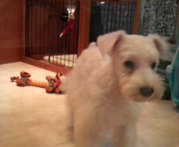 真っ白なシュナウザーの女の子の赤ちゃんが