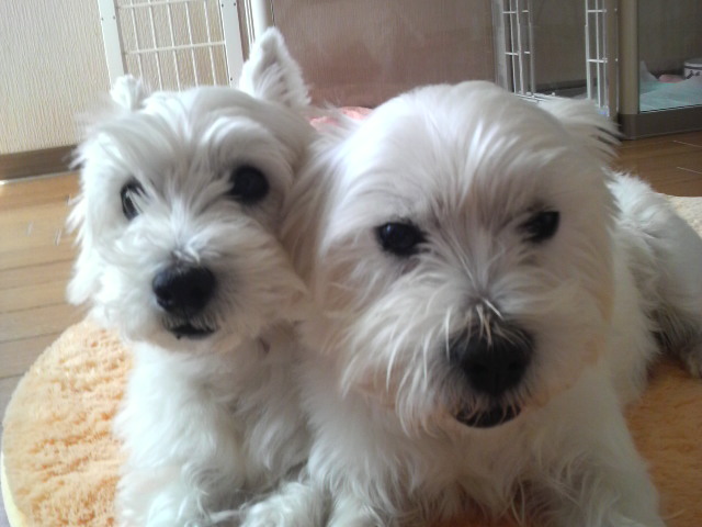 散歩もお預けのわんこ達は寒いので