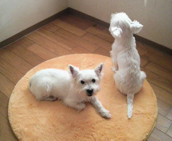 青森から送っていただいたを狙ってます とっても良い香りがしていて 蜜もしっかり入った『蜜子さん』 妹が最後の方にとても食べたがった『蜜子さん』 本当は切って置きたいのですが 我が家には目を光らせ狙う大輝がいるもんで・・・ そのままで申し訳ないのですが(。ノω<。)ァチャ- |ョ・`ェ・) 観察・・ が大好きな我が家のわんこ達ですが 大輝だけはしぶとく見つめたまま・・・ 蓮は見向きもせず・・・大輝は|ョ・`ェ・) 観察・・ 大輝には「ぶぅ にちょうだいって言わないとあげないよ~」と言い 明日にでも切ってみんなで食べたいと思います ※ぶぅとは妹のアダナです