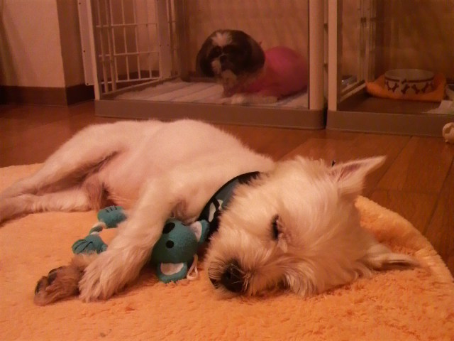 ゲージにいる萌も眠そう・・・ちょっと
