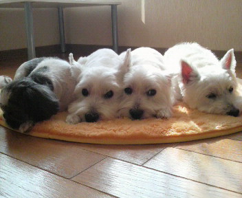 先週は風邪でダウンしていたので シャンプーをする事が出来ず やっと今日 シャンプーする事が出来ました しかし 鼻水が止まらないので 意外と大変だった・・・・ さぁ 写真と思ったら 私よりもわん達の方が疲れたらしく すでに まったりモードへ突入・・・ 祐菜と蓮がウト゚+。(o´ェ`o)。+゚ウト とうとう萌と大輝もウト゚+。(o´ェ`o)。+゚ウト このままみんな寝てしまいました そんな寝顔を見ていると がんばらないとなぁって 自分に言い聞かせてます