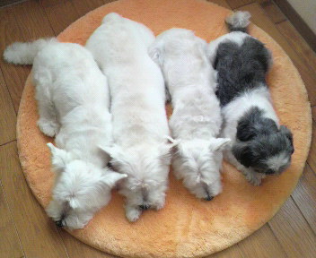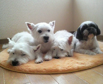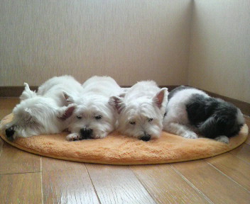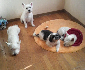 早朝に長い時間の散歩の疲れ?みんなまったりモードになってます