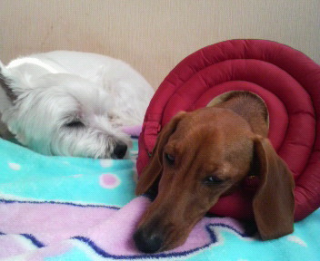 今日も仲良く一緒の大輝とチロル(半目で寝てる~
